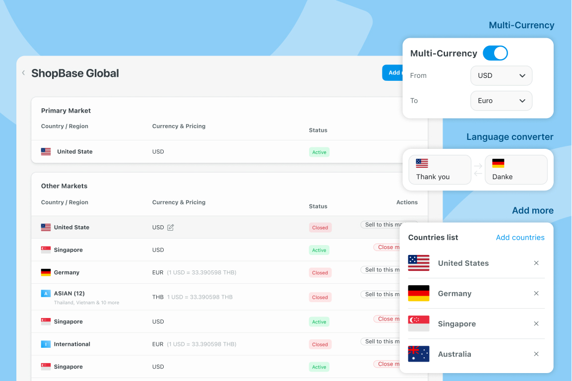 ShopBase comes with hundreds of features that can be customized for any work needs with more added every week. And they're all free, forever.