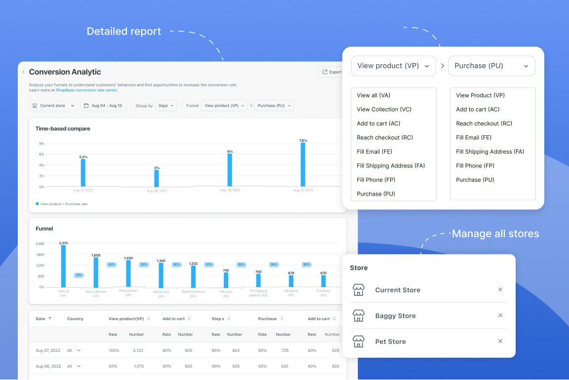 Analyze funnels to find opportunities for conversion rate optimization.